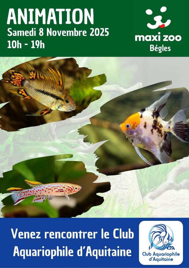 Venez retrouver le C2A au MaxiZoo de Bègles, ce samedi 8 novembre 2025, de 10h à 19h. Nous serons présents sur la journée pour vous renseigner et vous conseiller sur l’aquariophilie.